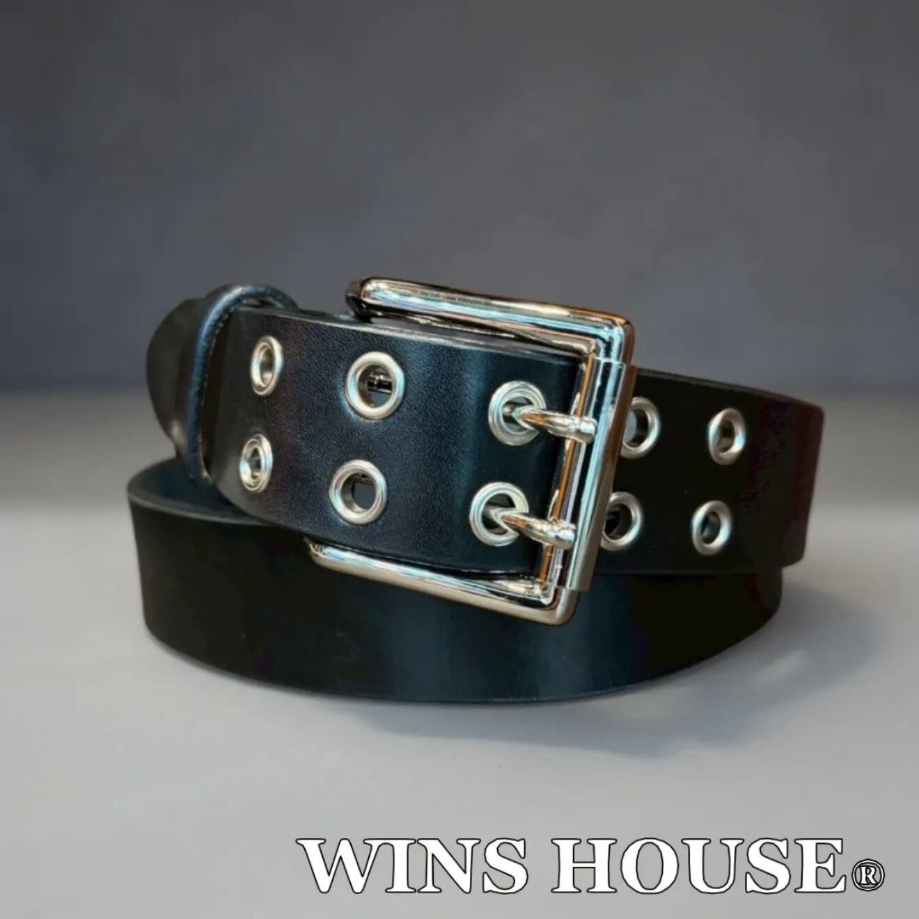 WINS HOUSE®︎【ウインズハウス】 W-PIN ショルダー レザーベルト ブラック 本革【牛革】日本製