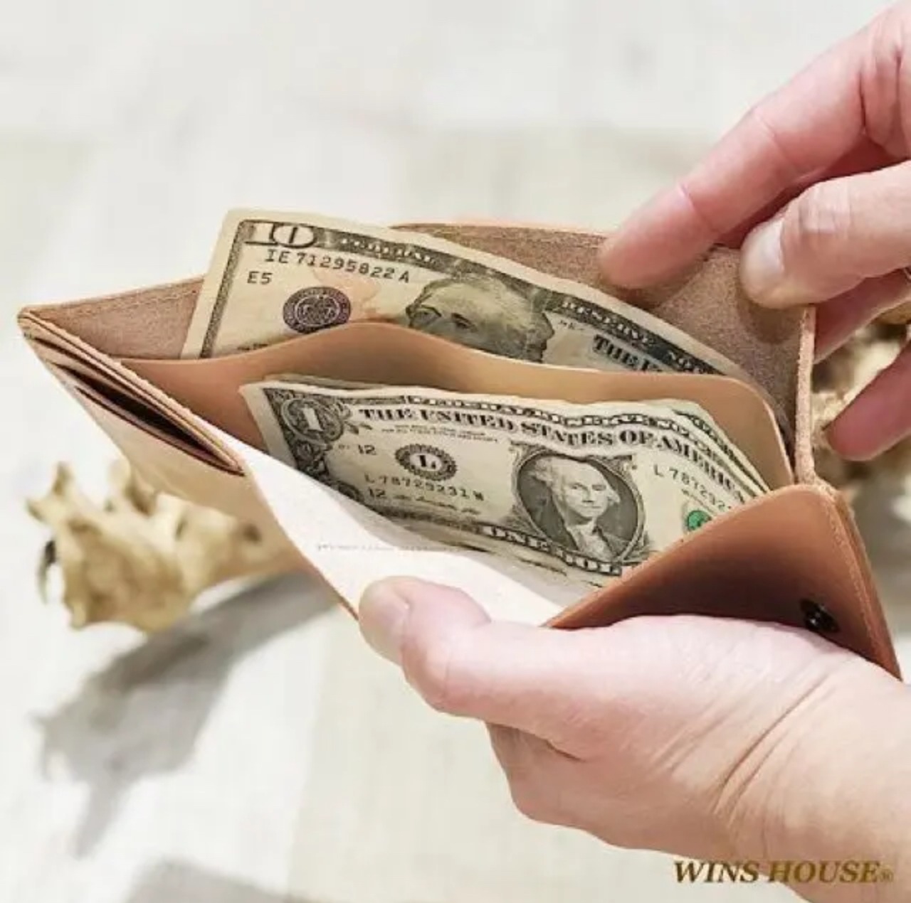 WINS HOUSE独自の製法で仕上げた「オイルレザー」を使用し、コンパクトにまとめたスマートウォレット。