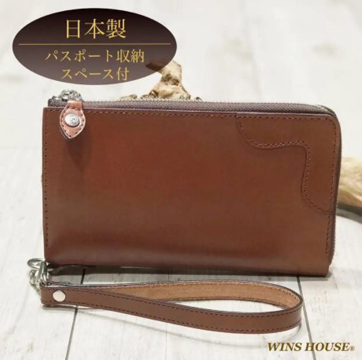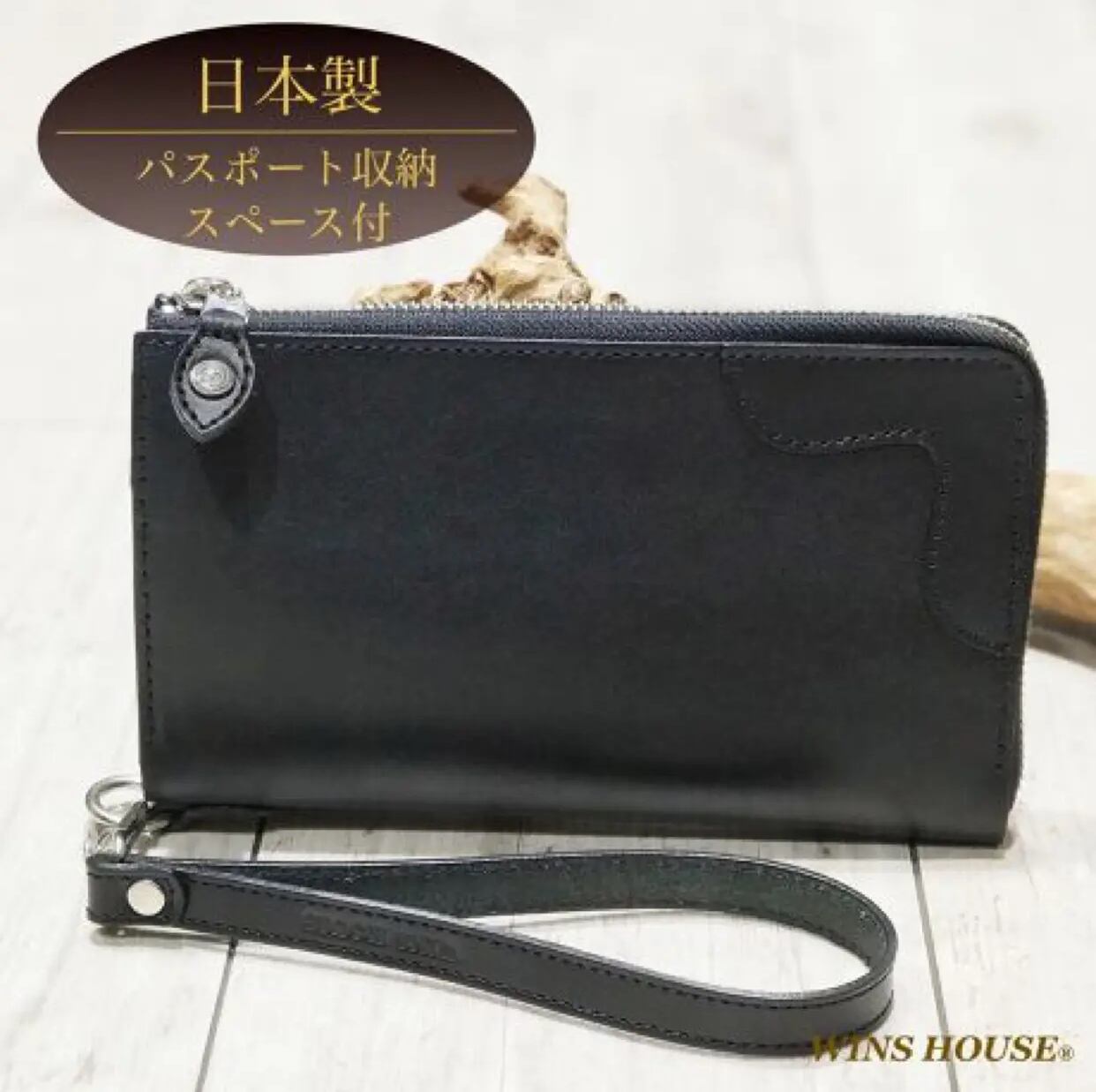 WINS HOUSE【ウインズハウス】 オイルレザー ラウンドファスナー マルチウォレット 本革【牛革】 日本製