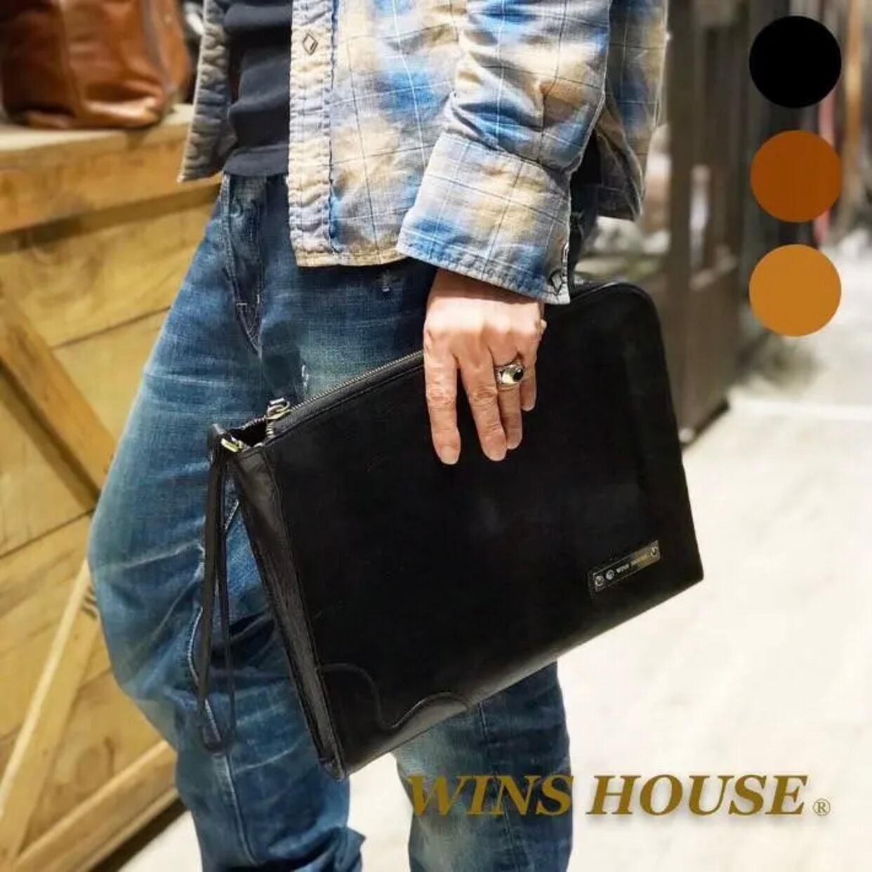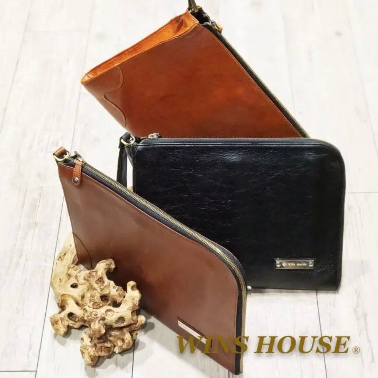 WINS HOUSE【ウインズハウス】 イタリアンレザー クラッチバック CLUTCH BAG 本革【牛革】
