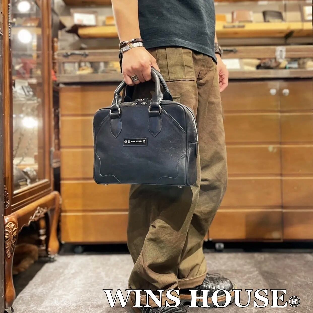 WINS HOUSE【ウインズハウス】 Italian Leather Hand Bag 【牛革】【イタリアンレザー】ブラック