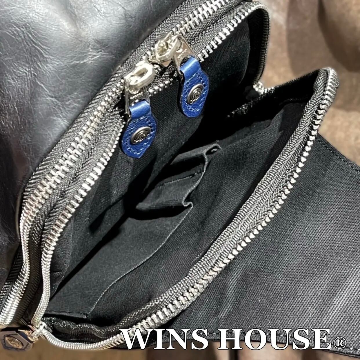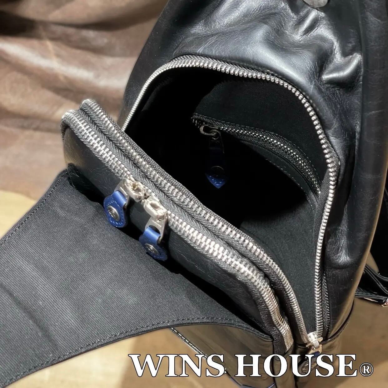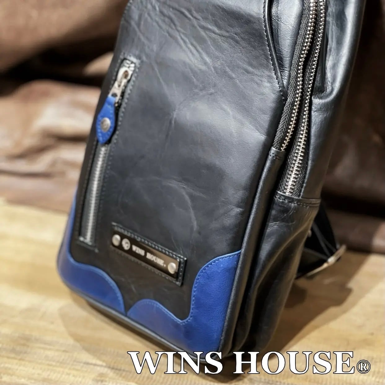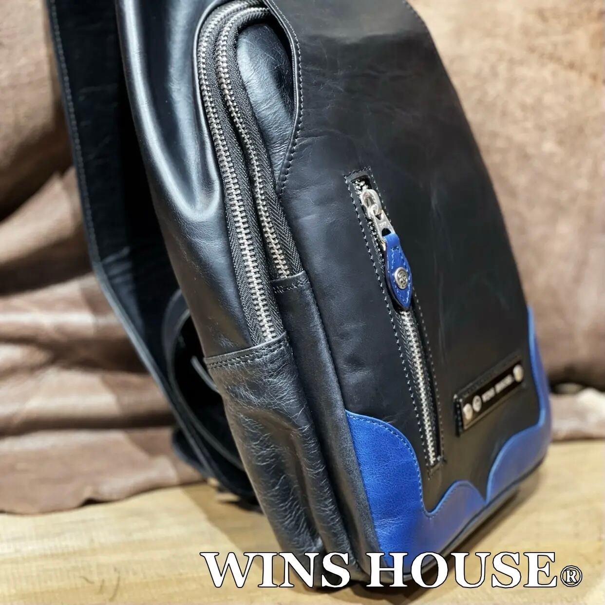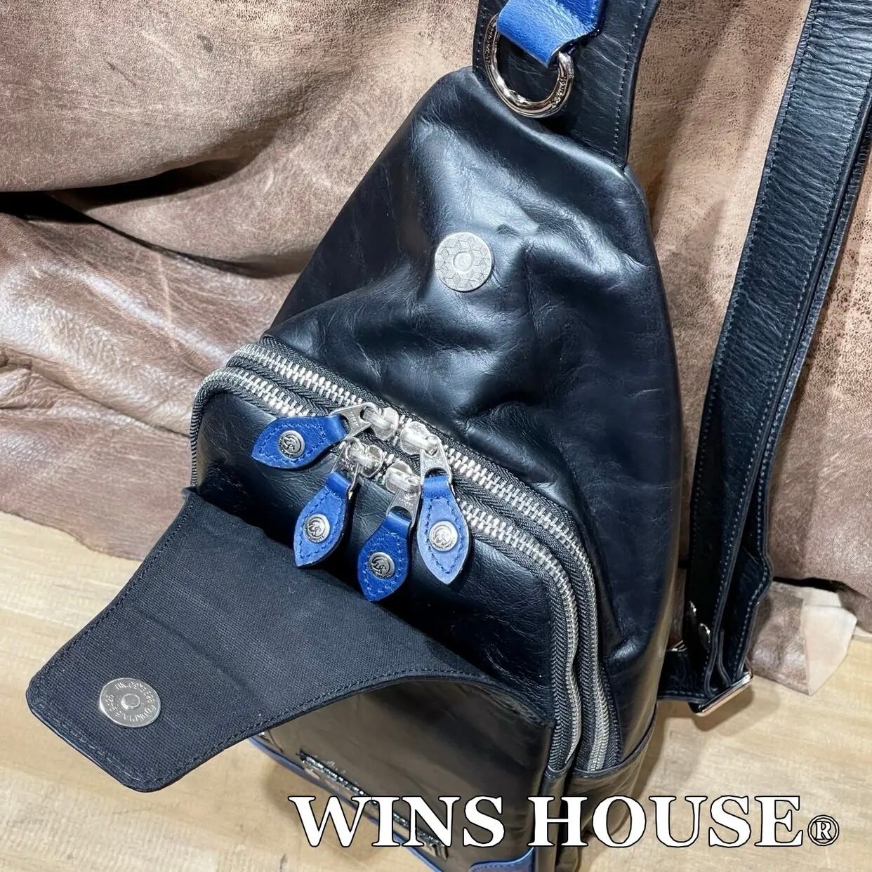 WINS HOUSE【ウインズハウス】 イタリアンレザー ボディーバッグ BodyBag 本革【牛革】ブラック/ネイビー