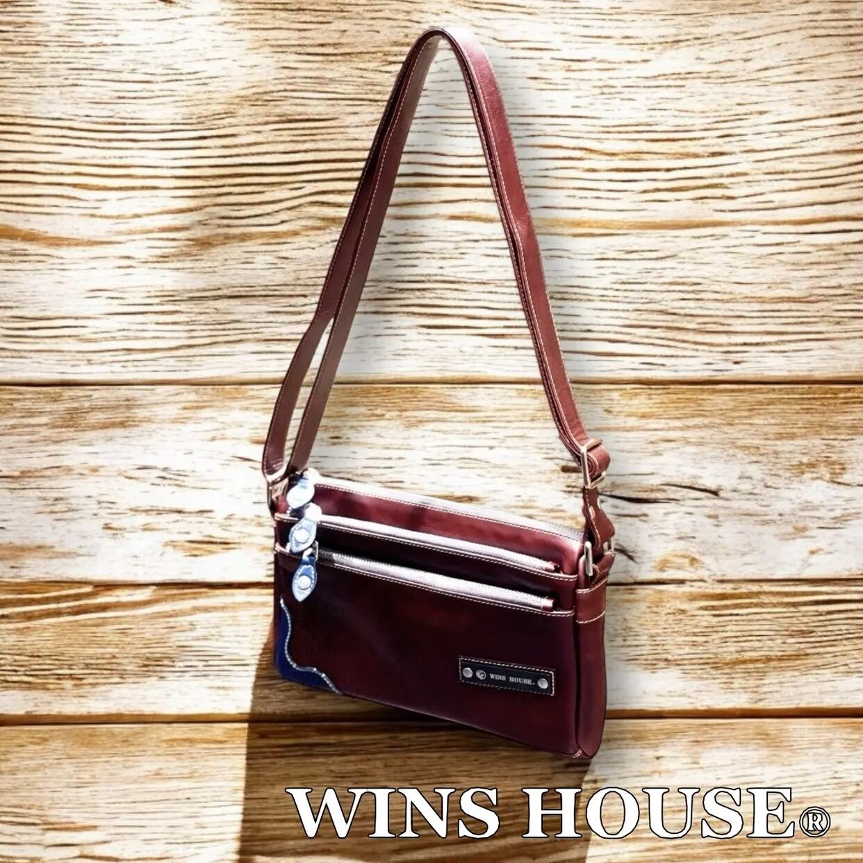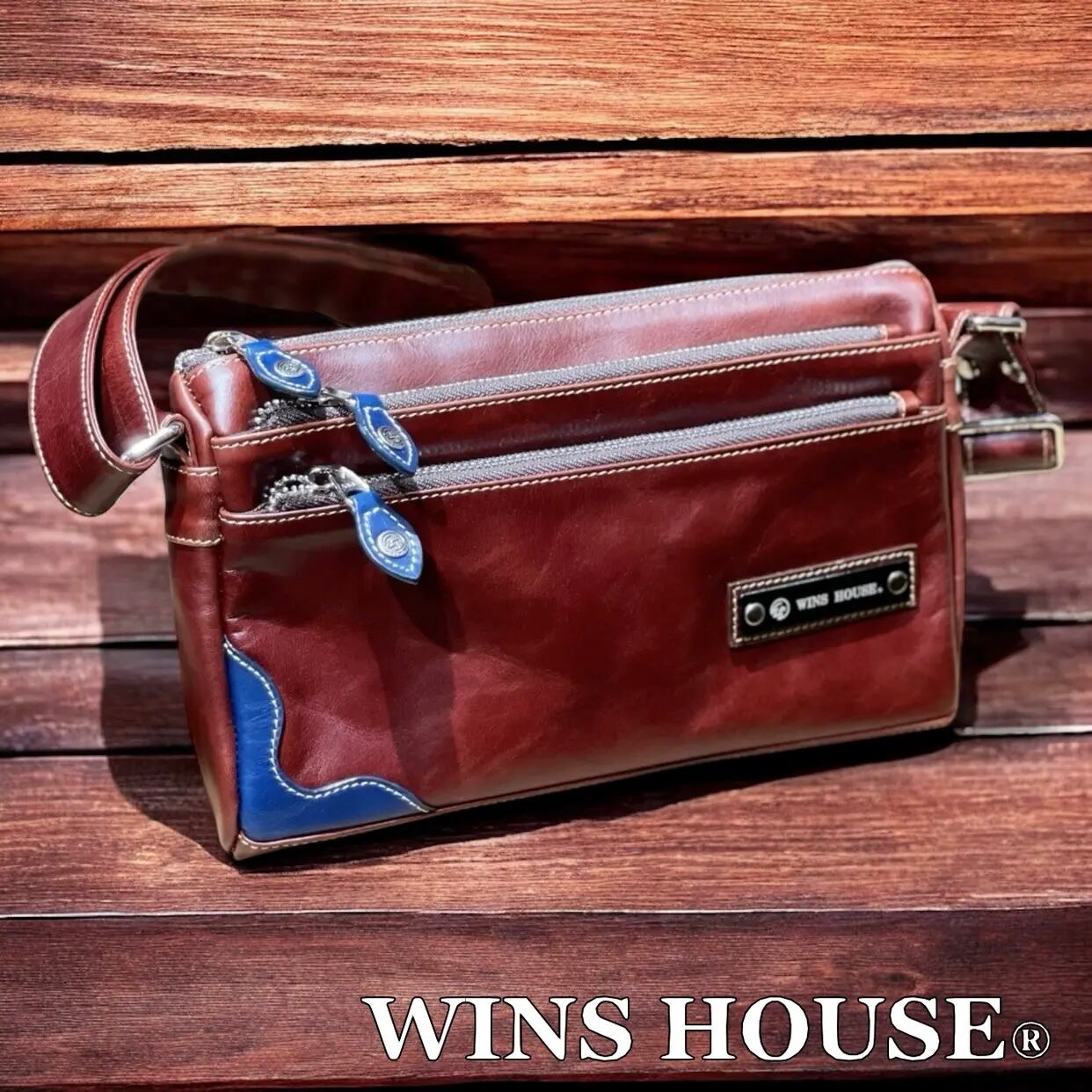 WINS HOUSE【ウインズハウス】 イタリアンレザーカジュアル MINI SHOULDER POUCH 本革【牛革】ブラウン/ネイビー